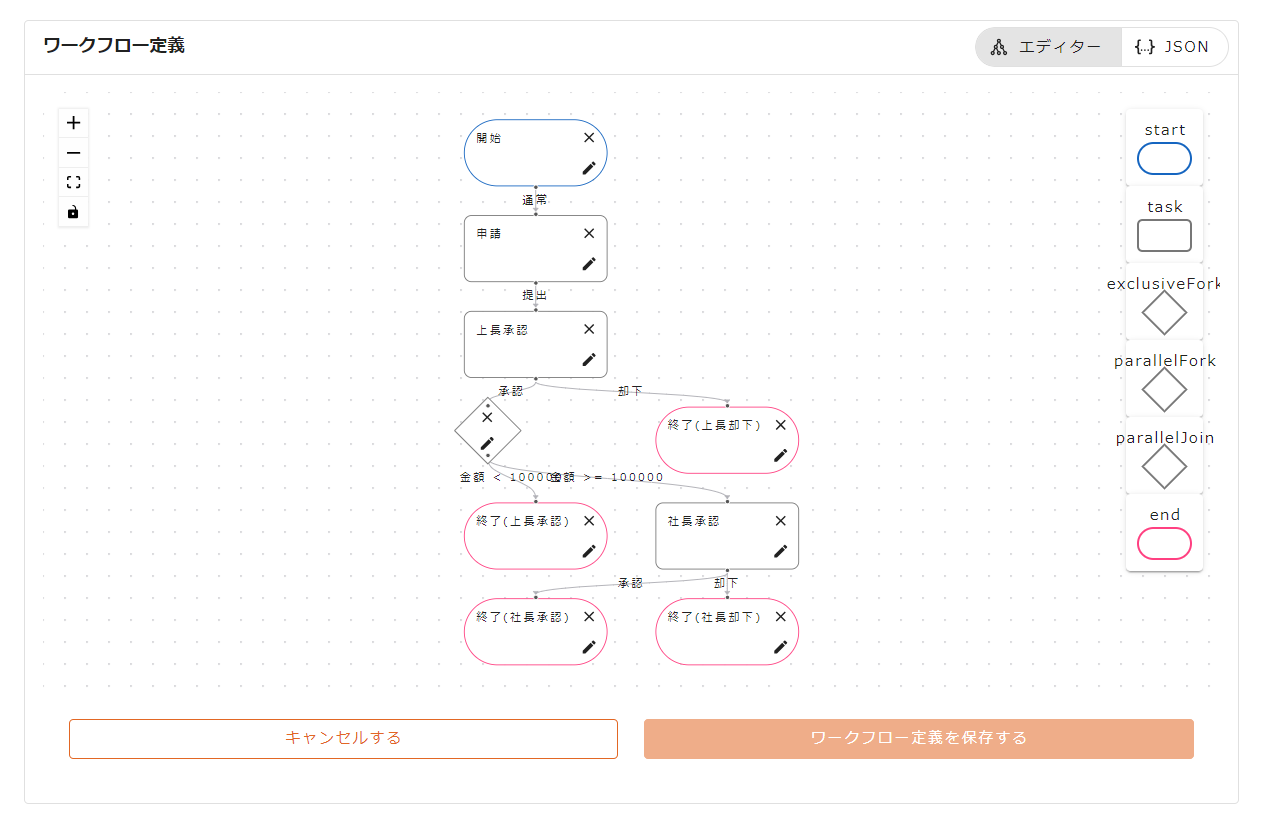 - ユーザー / グループ / ロールに対して、申請や承認などのワークフロー内のアクションの、実行可否を定義できます。